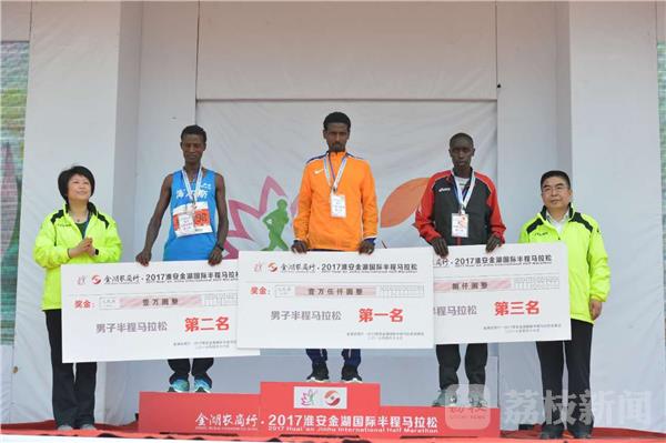 今天(4月16日)上午8点30分,第二届金湖农商行·2017淮安金湖国际半程马拉松赛在金湖荷花广场鸣枪开跑,有超过11000名来自全国乃至世界各地的马拉松爱好者再次齐聚金湖参与本次比赛,前世界冠军孙英杰担任领跑,央视著名主持人韩乔生担任嘉宾主持,出席本次开幕式的领导和嘉宾有淮安市人民政府副市长王红红,金湖县委书记张志勇,江苏省体育产业集团有限公司总经理陆路,淮安市人民政府副秘书长王立华,金湖县委副书记、县长徐亚平,淮安市体育局局长、党组书记卞玉,江苏省体育竞赛管理中心书记朱晓军,江苏省体育产业指导中心副主任、江苏省发展体育基金会常务副秘书长周玲美,金湖县委常委、常务副县长王建军,金湖县副县长高昌萍,金湖农商行董事长程明飞,上海上有资产管理有限公司总裁姚霞发。经过激烈的角逐,最终来自埃塞俄比亚的选手分别获得男女组半程冠军。