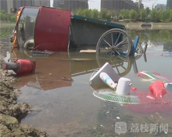 记者在六合雄州大桥下,看到两辆三轮车翻倒在河边,车身上还贴着钻孔、砸墙的联系电话。不光是车子,就连电钻、手推车等干活工具也散落在河岸边。河边钓鱼的市民说,早晨他们来钓鱼时,车子已经翻倒在河里,当时还有两伙人在河提上争吵。其中一伙人有六七个人,另一伙只有一人。双方争吵升级正欲动手,一方男子突然坐在地上,另一伙人就没有动手。钓鱼市民报警后,两伙人在警方赶到前已离开了现场。