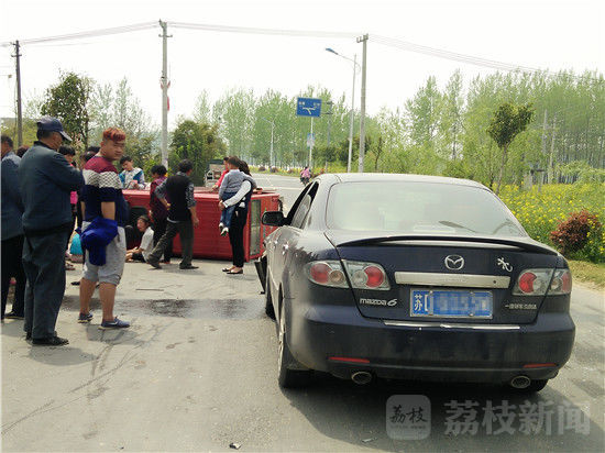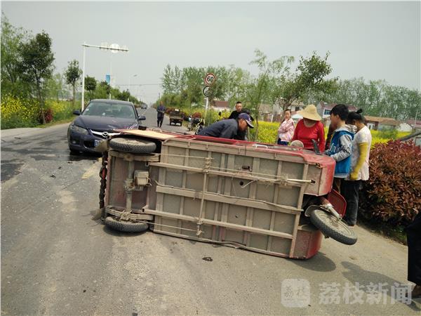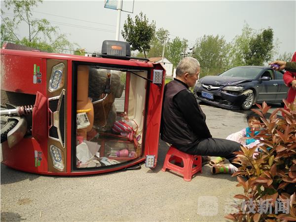 4月16日上午十一点半左右,涟水县涟羊南路徐集石庄地段发生一起交通事故,一辆轿车由北向南行驶,与一辆由西向东上码头左转弯的三轮车相撞,造成三轮车侧翻。