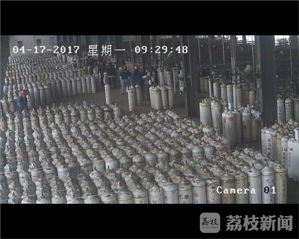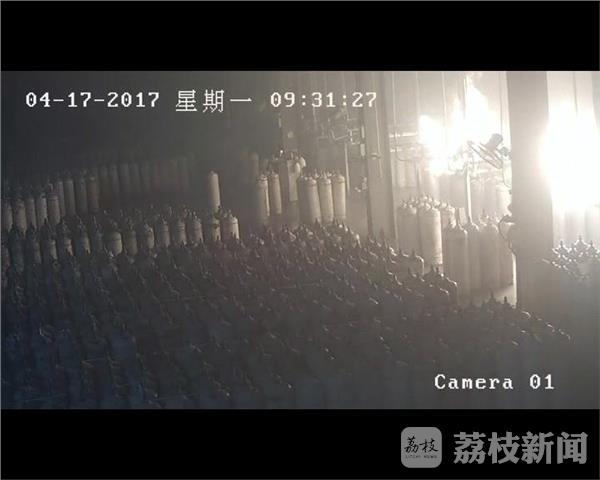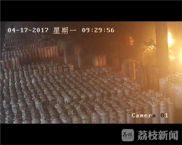 荔枝全媒体记者路辉 4月17日上午9点半,无锡市新吴区后宅镇一气体公司厂房发生火灾,大火瞬间引燃车间内近百只气瓶,现场十分吓人。