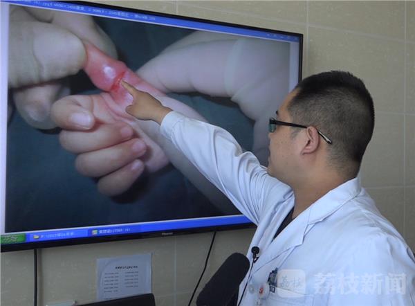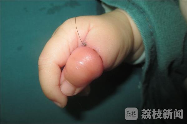 黄女士赶紧和爱人抱着涵涵从安徽老家赶到徐州仁慈医院,医生检查后发现,涵涵的手指表层皮肤已经被发丝勒断,如果再晚一些就很有可能导致手指坏死,将面临截肢的后果。