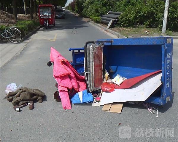 记者闻讯赶到现场时,交警部门正在勘察现场,现场电动三轮车侧翻在地上,地面物品散落一地,一只塑料盒里还盛着清蒸好的童子鸡,据卡车司机介绍,当时他由西向南转弯准备进厂,随后发现后方三轮车侧翻,一名老太倒地,他就下车报警了,自己车根本没有碰到死者车,当时死者的狗链子就栓在电动车脚刹上,“是狗遇到我的车受惊吓了,将老太三轮车带翻,老太倒地后就不醒了,随后120闻讯赶来说是老太已经猝死了。”卡车司机介绍道。记者随后看到被道路施救人员临时看管的狗,狗体积比较大,看起来还是比较温顺的。