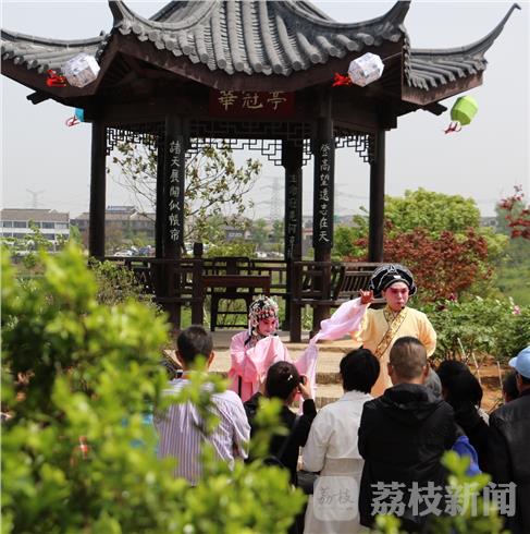 小康牡丹园里的牡丹花以曹州牡丹为主,有赵粉、洛阳红、曹州红等上百个品种。除了绚丽娇艳的牡丹花之外,现场由南京紫金昆曲社的表演艺术家们带来的昆曲《牡丹亭》,也在牡丹园中精彩上演,让无数游客沉醉于昆曲的韵味中。