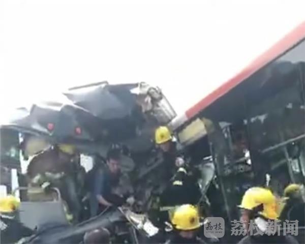 事发时,车辆行驶到桥面上和苏州一辆公交车相撞,事故发生后,两车司机和多名乘客受伤,救援人员赶到现场发现车体严重破损,大巴严重损坏,车顶几乎掀掉,驾驶员受伤被困,伤势严重。车上虽然有位小伙子自己也受了伤,但仍然扶住受伤司机,帮助他简单止血并等待救援,受到大家称赞。救援人员随后使用破拆工具将受伤司机救出,将所有乘客疏散出来,并将受伤者抬上救护车。目前,伤者被送到木渎人民医院等苏州多家医院救治。