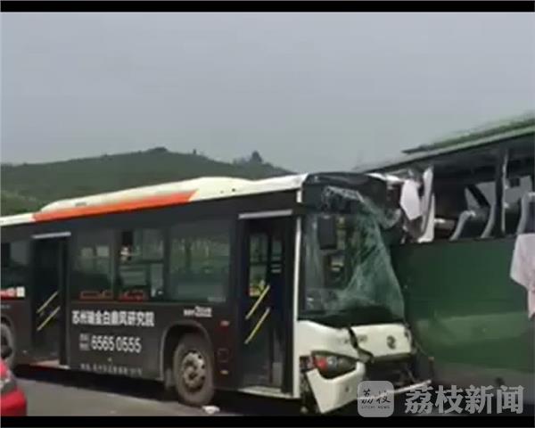 今天(4月19日)中午12点,苏州市吴中区太湖大桥1号桥发生旅游大巴和公交车相撞事故,造成十多人受伤。事故发生在一号桥桥面上,下面就是万顷太湖。据了解,该大巴乘客是从上海来金庭休假的,今天打算返程,车上当时约有40多人。