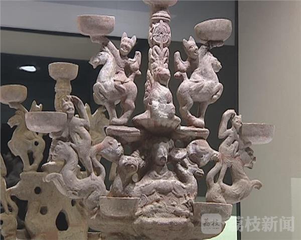 油灯博物馆馆长陈履生告诉记者:“这展十六国时期的油灯体量是最大的,它带了两圈佛像,还带星相,每个插口是龙头的。”