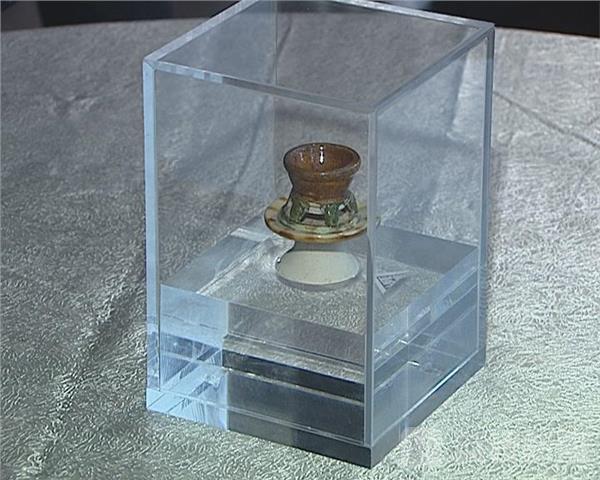 安装完了这个大型的油灯,陈履生又展示了一个极为袖珍的油灯——唐代的唐三彩油灯。别看油灯很小,它可是跟着长征七号火箭上过太空的:“当时因为搭载物要求很轻,不能有大的,所以选了一个很小的唐代的。”