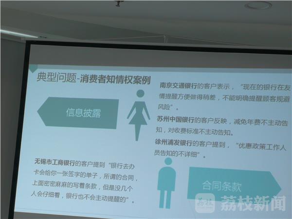 知情权是消费者的一项基本权利。调查表明,银行业对消费者知情权不够重视。比如对于理财产品风险和收益的,没有充分告知的比例接近三成。省消协赵鑫表示 “无锡市的工商银行,客户反映银行去办理合同时,银行会让你填一张单子,但是合同上面字是密密麻麻,都是条款,银行也没有主动给你提醒。很多消费者反映银行的格式条款内容太繁琐,字体也太小,加上基本不仔细阅读,导致合同的签署是流于形式的。有的人在办卡后一两天内就会受到一些推销理财产品的骚扰电话,就是怀疑在办卡的时候,个人信息遭到了泄露。”