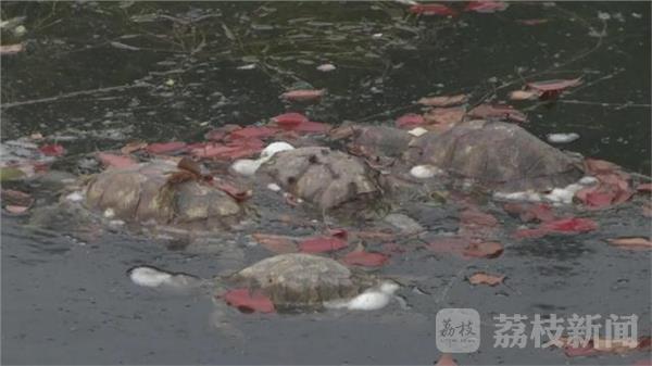 4月20日 上午,南通市市民韩女士到狼山游玩。在狼山脚下的一个河塘里,韩女士吃惊的发现,有几十只死乌龟 漂在水面上。 南通市狼山脚下的这条河叫玉带河,玉带河的最西头是西山嘴池。就在这个池塘内,韩女士发现了不少乌龟的尸体,大概数了一下,有30多只。这些乌龟的尸体已经开始腐烂,不时有苍蝇在上面飞舞。靠近河岸,阵阵腐臭味随风飘来。