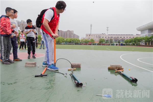 “接近80米!”看到自己小组的”水火箭”飞出了比赛中最远的好成绩,3位小朋友兴奋地欢呼雀跃起来。4月21日,临近中国航天日之际,南京航空航天大学学子前往翠屏山小学,举办了一场“水火箭”比赛。36名小朋友在22位志愿者的带领下,学习“水火箭”的原理,制作并进行比赛。最终,12个小组的火箭升空,最远的飞出了近80米的距离。