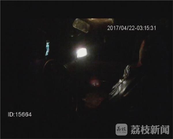连云港市交警支队高速三大队副大队长陈军:“在路边应急车道上停着一辆打着双跳的面包车,当时我们就停车下来检查, 当时发现车里没人。后来发现车内有一个亮点我就又下车去看了一下,发现有一个人躺在前排,不是躺,是趴,趴在前台的驾驶座和副驾驶座位上。”