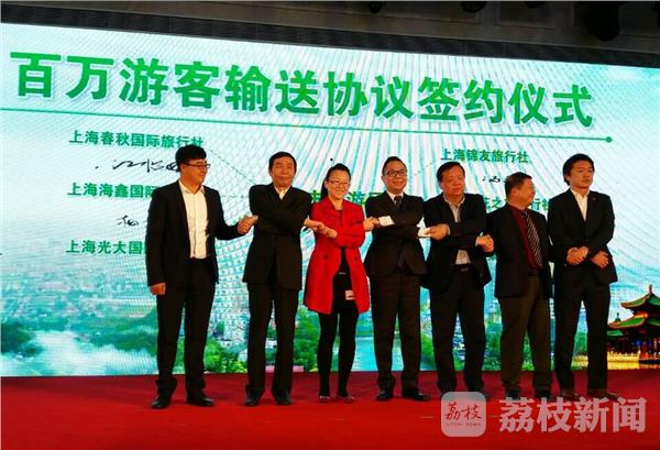 当天下午,南通与上海签订了旅游项目与客源输送协议,其中启东魁北克艺术之城、海安乐百年健康旅游小镇、如皋长寿慢城等3个项目签约;南通市旅游局与上海春秋国旅、上海海鑫国旅、上海光大国旅、上海锦友旅行社、上海莲花之旅国旅、日本HIS集团上海市支店等旅行商代表签订客源输送协议。