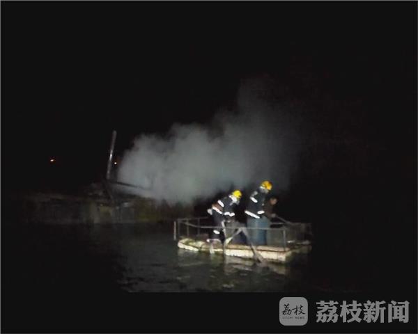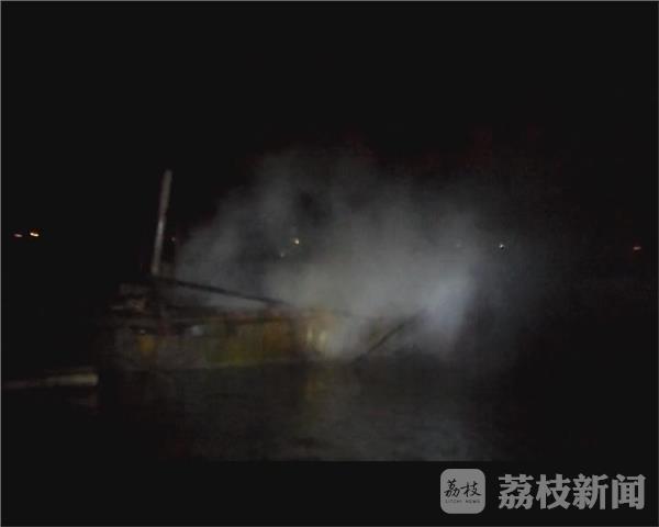 消防队员赶到现场的时候发现,渔船距离河岸有10米左右,渔船船尾正处于猛烈燃烧的状态。经过现场紧急询问,消防队员得知渔船上的船民已经自行逃离到一条备用的逃生小船上,没有人员被困。但渔船上面存有柴油,消防队员立即出动水枪,打击明火,确保船上柴油不被引燃。等到明火基本控制后,消防队员利用逃生小船进入到渔船做进一步处置,大约15分钟后火势被完全扑灭。