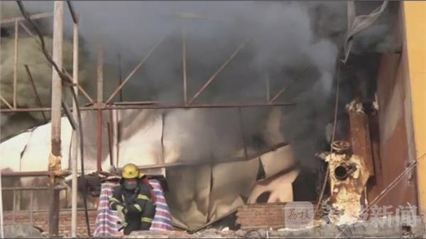 徐州消防队员:“里面烧的什么东西,烧的一些保温层吧,烟比较大,过火面积大概七八十个平方吧。”