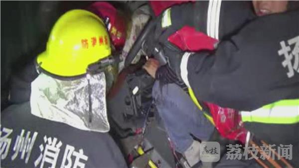 4月26日凌晨,328国道扬州市广陵段,两辆货车在行驶过程中发生追尾事故,后车司机被困车内不能脱身。当地消防接到报警迅速赶赴现场施救。 追尾的是一辆红色货车,车头因挤压发生变形,司机被方向盘死死卡住,口鼻流血、情况危急。消防队员立即用扩张器打开变形的车门,检查司机伤势。 车门打开后,消防队员发现车内空间狭小,不利于施救,另一名消防队员从侧面钻进驾驶室,对司机受挤压部位进行扩张。 经过紧张救援,司机被成功救出。