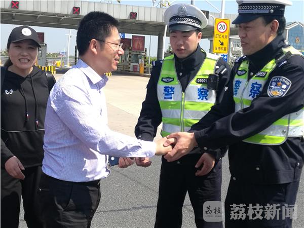 民警考虑到他们去苏州路途还远,告诉驾驶员:“你们去苏州路途较远,建议你们前方古现收费站下高速找维修点,检查好车况,排除了车辆隐患后再上路行驶以确保安全。”考虑到五一假日期间车流量较大,高速交警前警车引道,后警车在后方警卫将该车护送至盐城东收费站,告诉车主右转向市区方向找个修理点更换新胎。车主一家子握着民警王岩、王国庆的手感谢不已。
