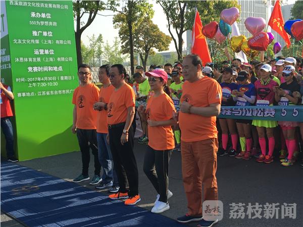 荔枝新闻记者在现场看到,有些发福的侯耀华脚蹬跑鞋,上身穿着桔黄色圆领短袖衫,站在起点最前面,大有与跑友们一比高下的架势。但是,随着发令枪响之后,也仅仅跑了三、五步远,侯耀华就落后于跑友,并很快淹没于长跑队伍中。据介绍,参加半程马拉松赛的跑友除了来自全国20多个省(市、区),还有十多名跑友来自其他国家和地区。本次东台举办的“半马”比赛场地在西溪旅游文化景区,是国家4A级旅游景区、江苏十大新景区和省影视基地,两淮海盐文化的起源地、国家级非物质文化遗产“董永传说”的源头地。赛道沿线树木葱郁,风景优美,空气清新,被跑友们誉为平原地区“最美的马拉松赛道”。“我们东台沿海浅滩有世界最大的辐射状沙洲,有国家级森林公园——黄海森林公园。全市从城市到乡村,到处都能看到葱郁的树木、森林,优美的环境,清新的空气已成为东台引以自豪的‘名片’。”