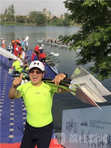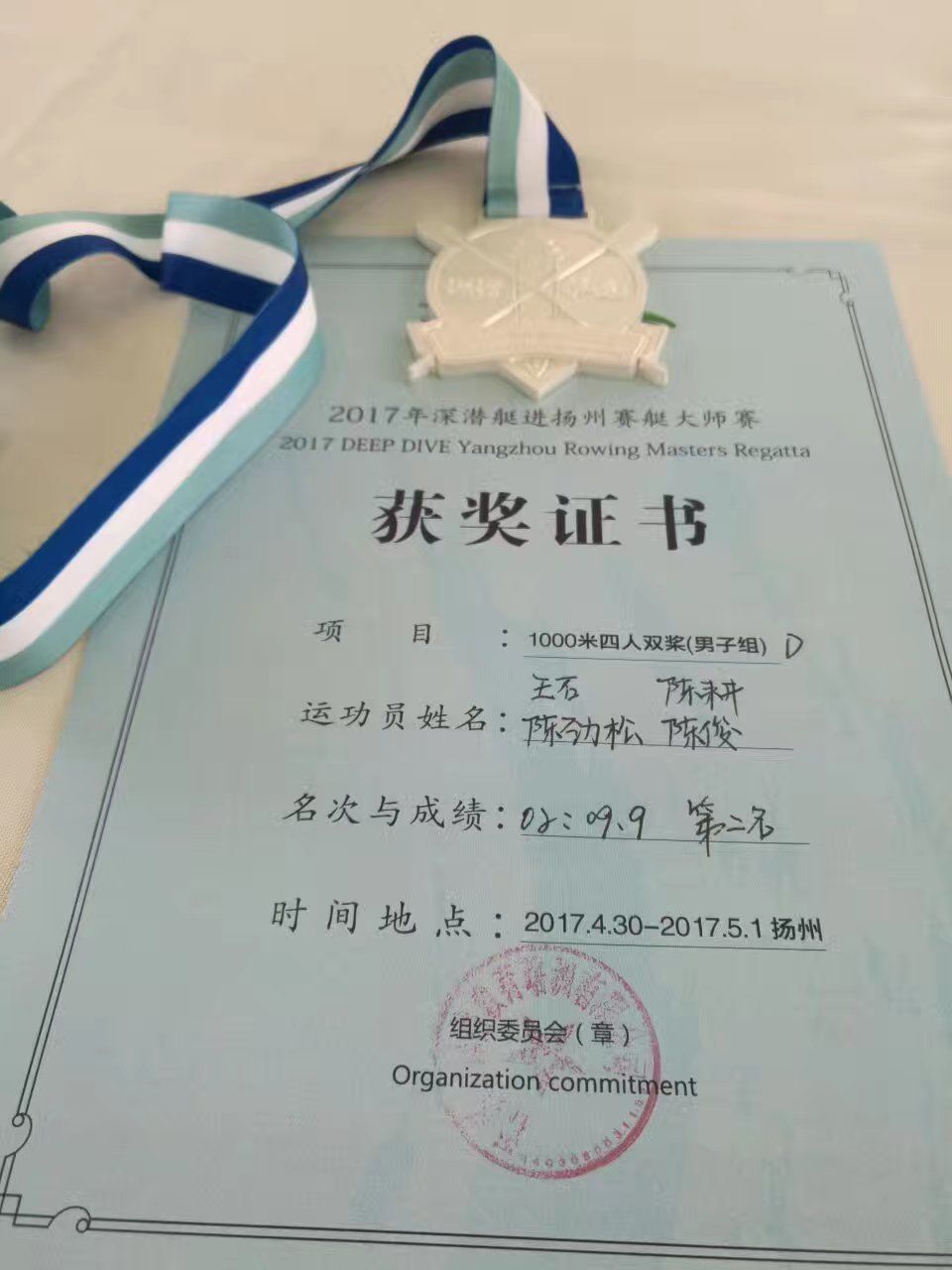 今天(5月1日)“2017深潜·艇进扬州赛艇大师赛”在扬州生态科技新城举行了决赛,亚洲赛艇联合会主席、万科集团董事会主席王石亲自上阵,在团队比赛最后一棒出场,虽然已经66岁,但实力非常强劲。国家赛艇俱乐部联盟常务副主席,江苏省赛艇运动协会主席陈俊与亚洲赛艇协会主席王石一起获得四人双桨D组第二名。江苏艾佳艇进俱乐部获得了四人双桨第一名、男子双人双桨第三名的好成绩。