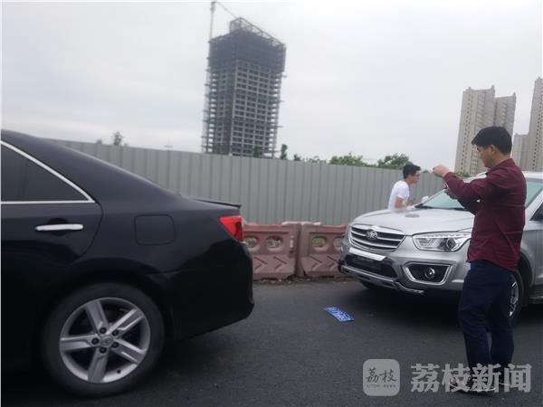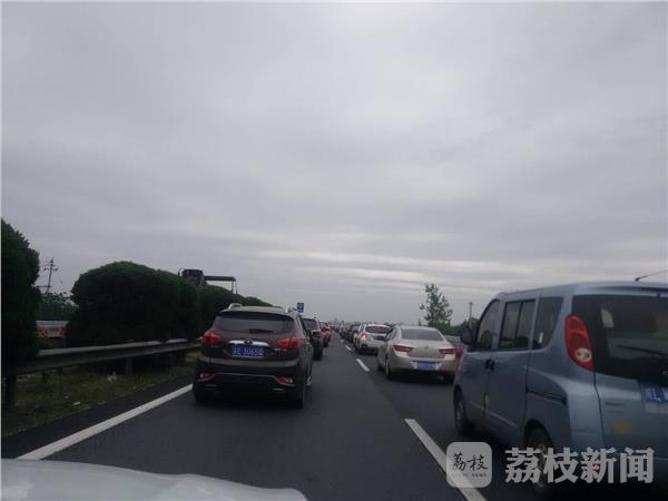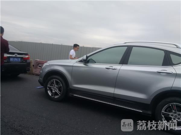 今天(5月2日)中午11:45许,京沪高速泰州段发生一起追尾事故,两辆轿车相撞,后车车牌脱落。幸好并无人员伤亡,事故一时引发路堵。