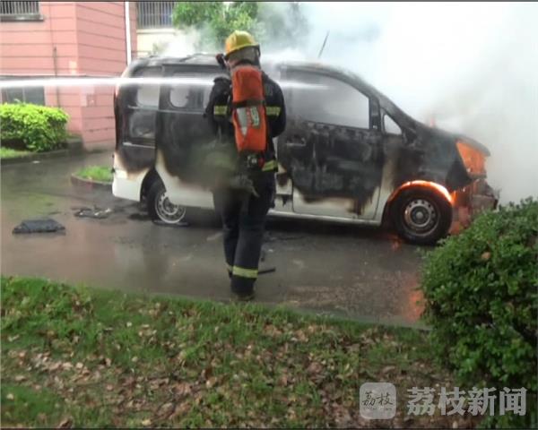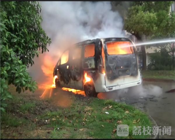 5月2日凌晨6点,无锡新吴区泰伯大道幸丰苑二期小区内发生一起事故,一辆停放在小区内的面包车突然起火燃烧,周围居民发现后立即打电话报警。接到报警后救援人员赶赴现场进行处置。