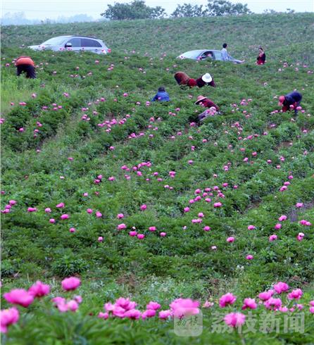 芍药是中国传统名花,与牡丹并称“花中双绝”,自古有“牡丹为花王,芍药为花相”的说法。而作为中药材,茅山芍药自古就被视为芍药中的上品,由于特殊地理气候条件,茅山芍药以其品相以及含量俱佳而著称,因芍药在茅山地区种植具有广泛的适应及生长、品质优势,又兼具景观效益,近年来,句容根生药材有限公司利用茅山周边原生态丘陵岗坡地,大力推进芍药、黄栀子、小花茱萸等品种进行规模化种植,目前周边已发展中药材基地1500多亩,除了经济效益可观之外,特别是每到花开季节,这里满山花开,红艳夺目,为人们赏花休闲又增添了一处新选择。由于芍药的花期较短,也就7-10天左右,喜欢赏芍药花的游客可要抓紧时间了!