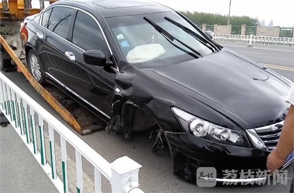 现场时看到,现场清障车正在对事故车辆进行拖离,本田雅阁轿车右前轮撞飞,而后车轮严重爆胎,车内两只安全气囊全部爆出,可以想象当时事发一幕非常惊险。随后事故车辆被拖离事发现场恢复车道通行。