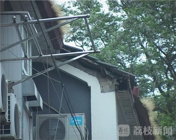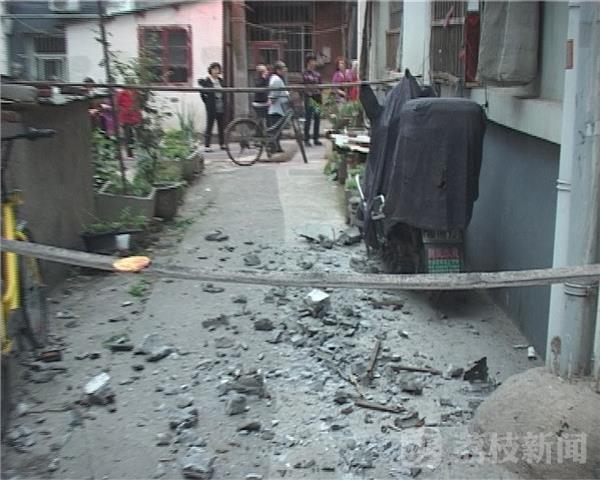 5月3日下午6点左右,南京鼓楼区驴子巷34号大院,有多位居民报警,称34号3幢一路边,楼顶屋沿水泥块再次大量坠落,险些砸到一对祖孙俩,报警求助。接警后民警随即赶往现场。