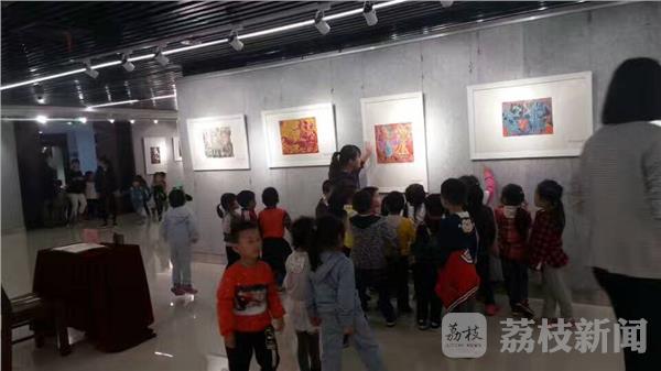 今天(5月5日)上午,南京市六合区大厂好亿佳幼儿园近百名小朋友在老师的带领下,来到六合区第二文化馆七楼展览厅观看东海少儿版画展,小朋友们对每一幅画都会评头论足,有的说这个好看,有的说这个画的好,并表示要向这些大哥哥姐姐们学习。