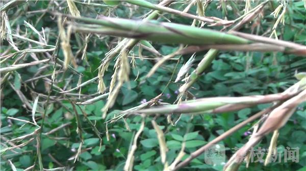 在嘉熙亭旁的一片小竹林里看见,有10多株竹子,开出密密麻麻的黄色小花,犹如稻穗花一样,凑近还能闻到阵阵清香。一些游人在目睹这一稀罕事的同时,担心它是“气候反常”、“不祥之兆”。