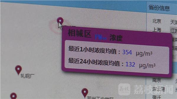 站在高处向外望,所有小山、芦苇、建筑,都好似被一层薄纱笼罩,若隐若现,而苏州市区路两边的树上也积了不少灰。根据实时监测,中午十一点时,苏城八个站点的AQI指数全部爆表,最高点甚至高达500,属于六级严重污染。而其中的首要污染物,是PM10。