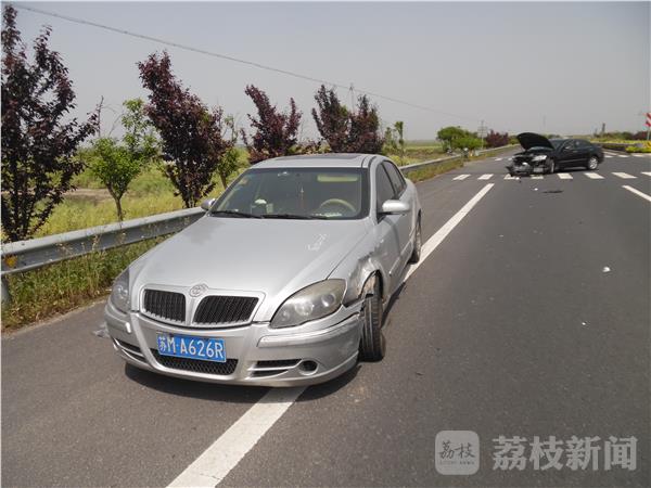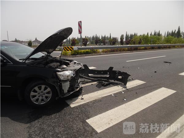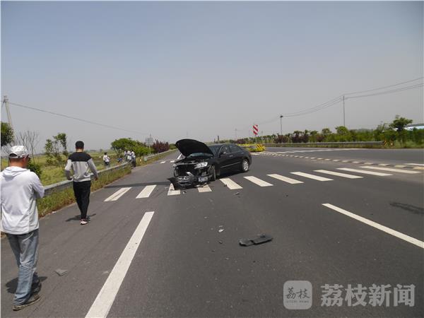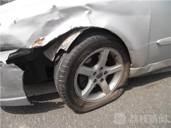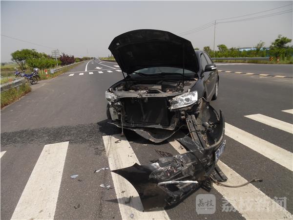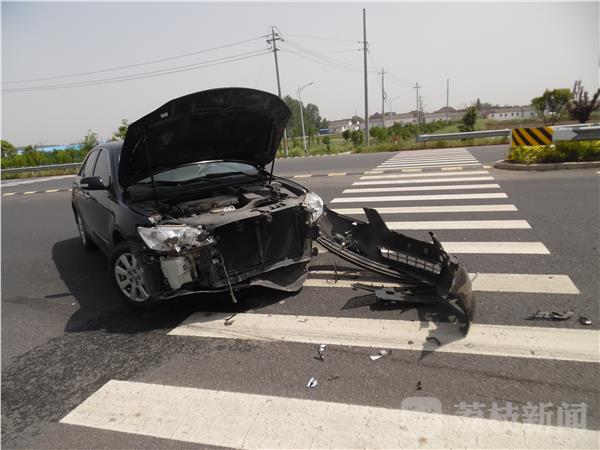 5月7日下午1时许,在泰州兴化351省道海南刘泽村路段,一辆从省道南岔路口转弯进入351省道的小轿车,由于驾驶员走神一不小心撞到省道上一辆正在倒车的银灰色小轿车。黑色小轿车前面保险杠和叶子板整体被撞甩开成U型锁状,银灰色小轿车左侧的轮胎也被撞瘪,车上的配件件撒了一地,所幸没有造成人员受伤。