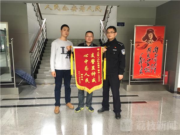 5月8日下午,邵先生特意从无锡赶到南京送来锦旗,对交警的辛苦付出表示感谢并对南京交警表示称赞。