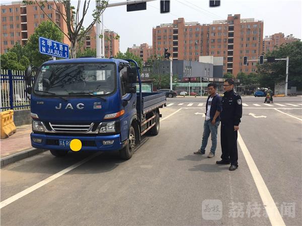 邵先生十分气愤并随即报警,八大队事故中队民警李川川接到当事人报警后立即联系邵先生并确认事发具体位置,后经调取附近店铺的监控发现了可疑肇事车辆,但由于是夜间,监控无法看清车辆号牌,只能确认是一辆蓝色蓝牌小货车。民警李川川在接下来的两天里多次到事发现场走访周边店铺及群众,但始终没有线索。