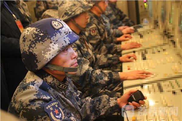 导弹营指挥军官解超旭、张学凯和搜索雷达指挥军官贾泽强、李军在各自的点位上娴熟地操作着数百个红色、白色、绿色按钮和开关,10多个荧屏交相闪烁,不断更新画面和数据。