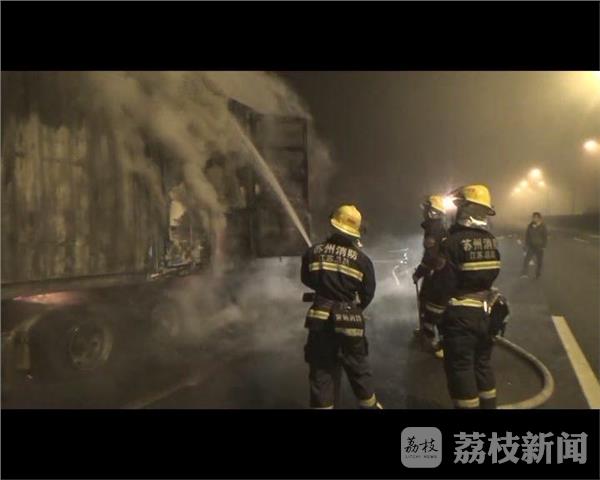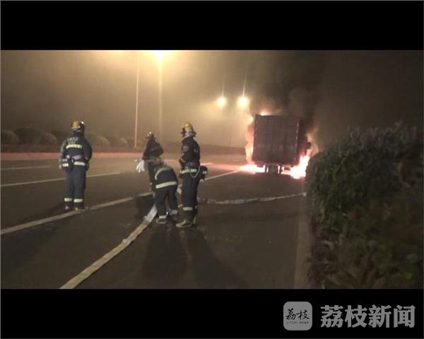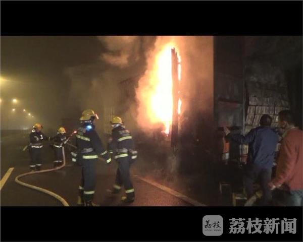 5月7日凌晨1点51分,苏州常熟尚湖镇罗墩村附近,有一辆货车发生火灾。