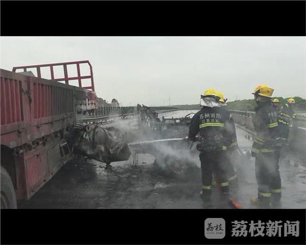 5月8日11点多,苏州常熟锡太路沙家浜转盘立交桥上,发生一起交通事故,有1人被困。