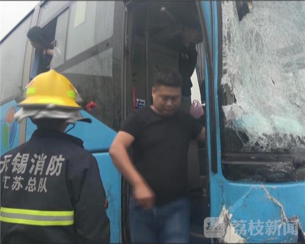 5月8日下午4点,沪宁高速无锡段往南京方向无锡东出口附近,一辆货车与一辆大客车相撞,大客车车门变形导致车内十多人被困。