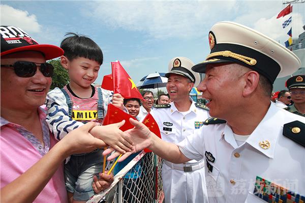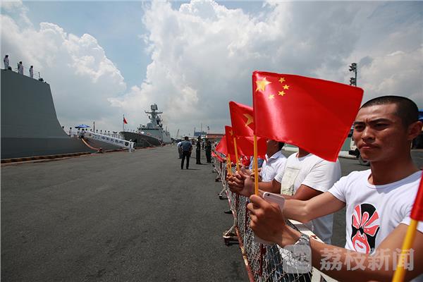 当地华人华侨到码头为我远航访问编队送行(禹威 摄)