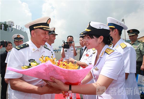 越南官兵为编队指挥员送花(禹威 摄)