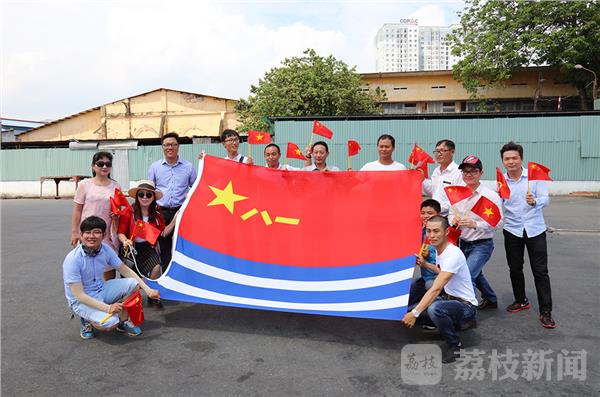 远航访问编队离开越南,华人华侨争相和海军旗合影(史奎吉 摄)