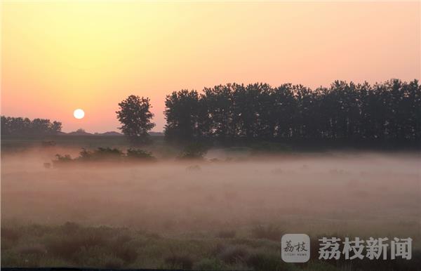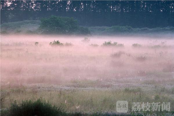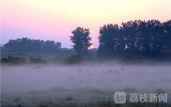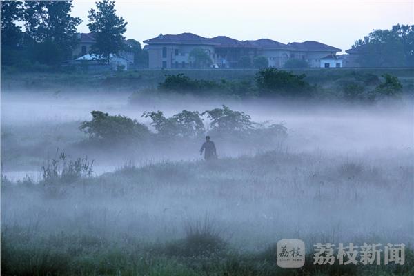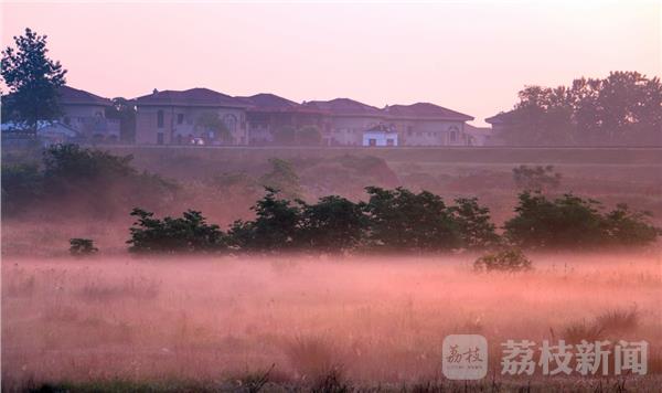 前两天的一场降雨过后,今天(10日)天气放晴。清晨,句容乡村田野被薄雾轻纱笼罩,如梦似幻,宛如仙境一般。今天(5月10日)清晨5点多钟,记者在句容城郊的晓庄水库的下游一片湿地看到:雾气在湿地的水草间蒸腾弥漫,草木在其间若影若现,美不胜收,而随着太阳渐渐升起,白白的雾气又被染成了金黄色,宛如一幅绝美的乡村水墨画。
