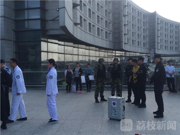 当天下午17点左右,笔者在现场发现,武警手持钢枪,特警拿着盾牌,周围有不少旅客,笔者刚开始还以为在拍“电影”。观察了数分钟后,发现该男子脾气暴躁、不停地反抗,嘴里还不停地喊:“XX必胜”。经过南京禄口机场公安、武警、特勤、医护人员的共同努力,该“精神不正常病人”最终被控制,随后120及时赶到将其送往医院。