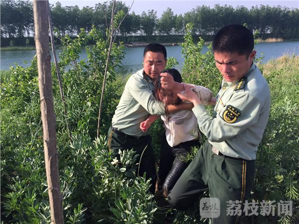 射阳:女子跳河轻生 边警下河救人5月10日下午4点半钟左右,盐城公安边防支队扁担港边防派出所接到群众报警称:在淮海农场北侧的苏北灌溉总渠边上,有一名年轻的妇女要跳河轻生,现在人已经进入到总渠的浅水区,情况十分紧急,请求边防派出所赶快派人过来处置。接到报警,边防警官顾不上穿戴救生防护装备,就迅速赶到了现场。