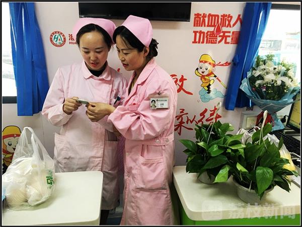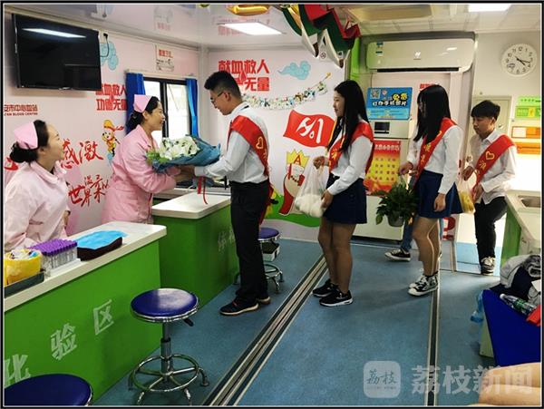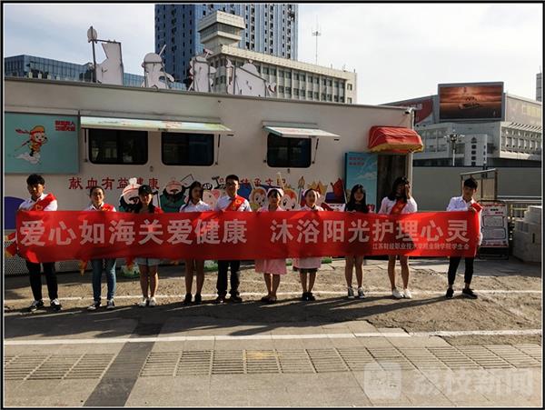 5月12日是国际护士节,为传承和弘扬南丁格尔精神,感恩和鼓励无私奉献的白衣天使,江苏财经金融学院学生会成员代表8人于2017年5月10日来到新亚西游主题献血车,慰问了献血车上的正在辛勤工作的护士们。