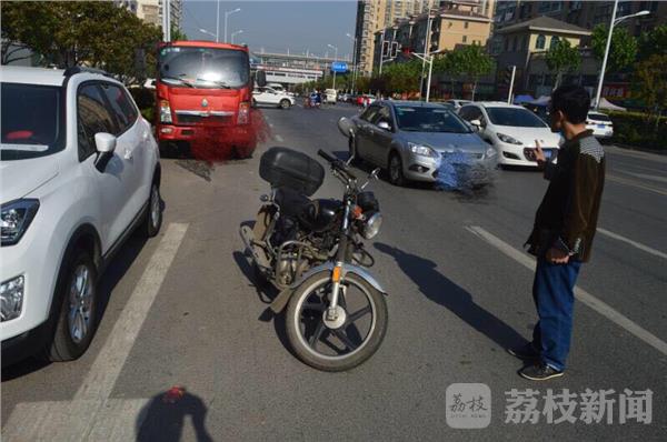 近日,在南京新华西路路段,发生一起摩托车追尾小车的事故。接警后南京交警九大队民警迅速赶往现场处置。