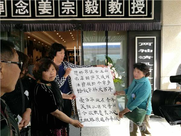 早年毕业于南京大学的77岁,江苏知名法学老教授姜宗毅5月8日在南京去世,5月10日追悼会在南京西天寺殡仪馆举行,曾经得到过他义务帮助的近百位普通人从全国各地赶至南京悼念逝者。送别姜教授的除了鲜花,还有数十幅书法条幅呈现在悼念大厅。姜教授曾任教于江苏省司法学校、劳改干校、警察学校、徐州工程学院和中国矿业大学等诸多高校。