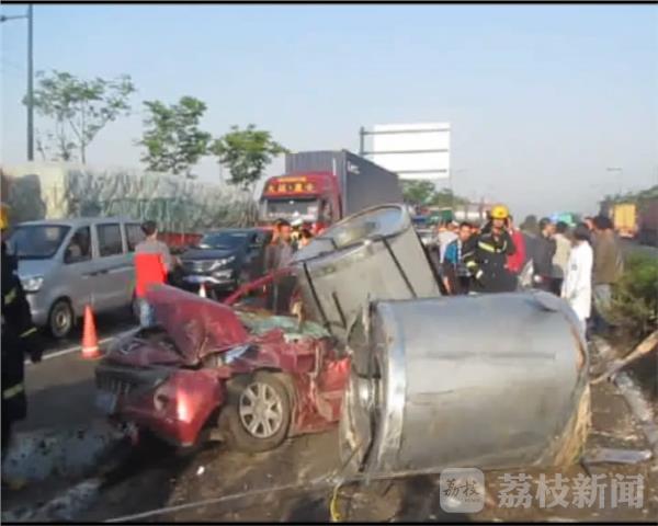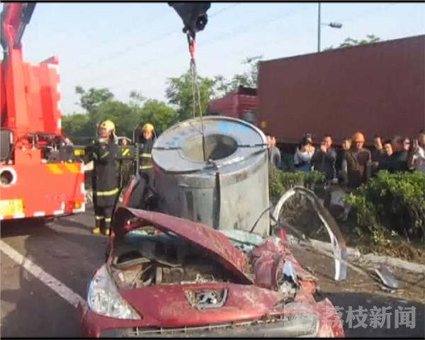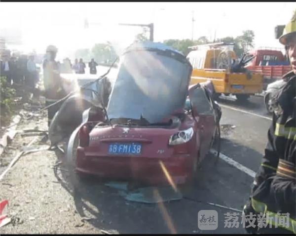 5月10日上午6点半,无锡江阴市祝塘镇文林暨南大道与富堰路交界处发生一起交通事故。一辆大挂车失控冲进逆向车道,挂车上的货物翻落,将一辆小轿车埋压,车内两人被困,接到报警后,救援人员立即出动赶赴现场进行救援。