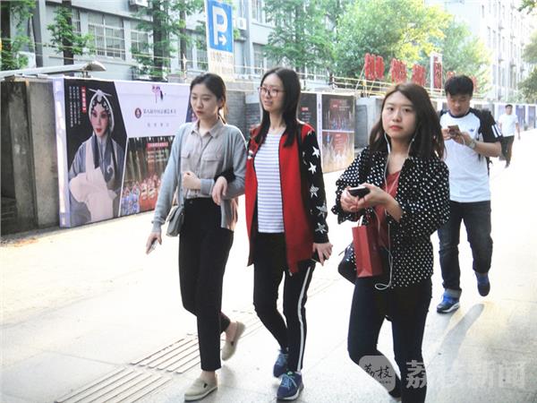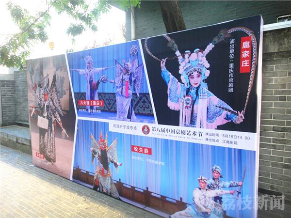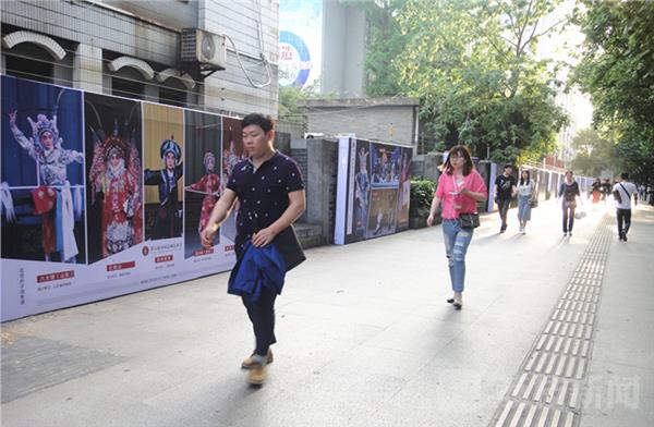 今天(5月11日)下午,荔枝新闻网友途经长江路,看到沿第九中学的百米围墙上整齐地矗立着22块京剧演出海报,市民经过这里纷纷放慢脚步,有的驻足仔细浏览观看。
