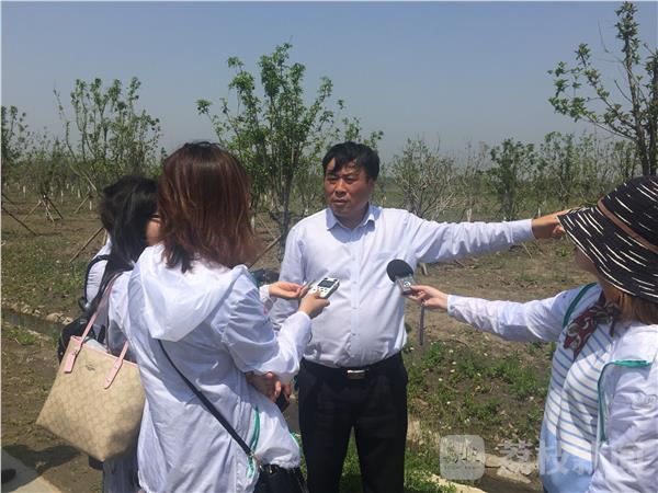 盐城市龙冈镇农业中心副主任张大文介绍植树情况