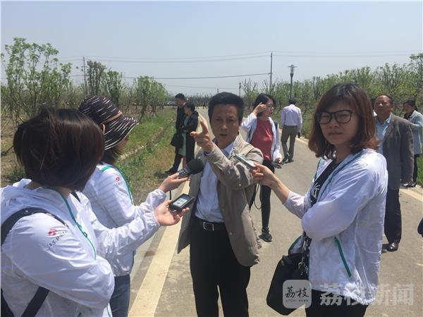盐城龙冈果树良种场场长许洪华介绍绿色长廊华都森林公园